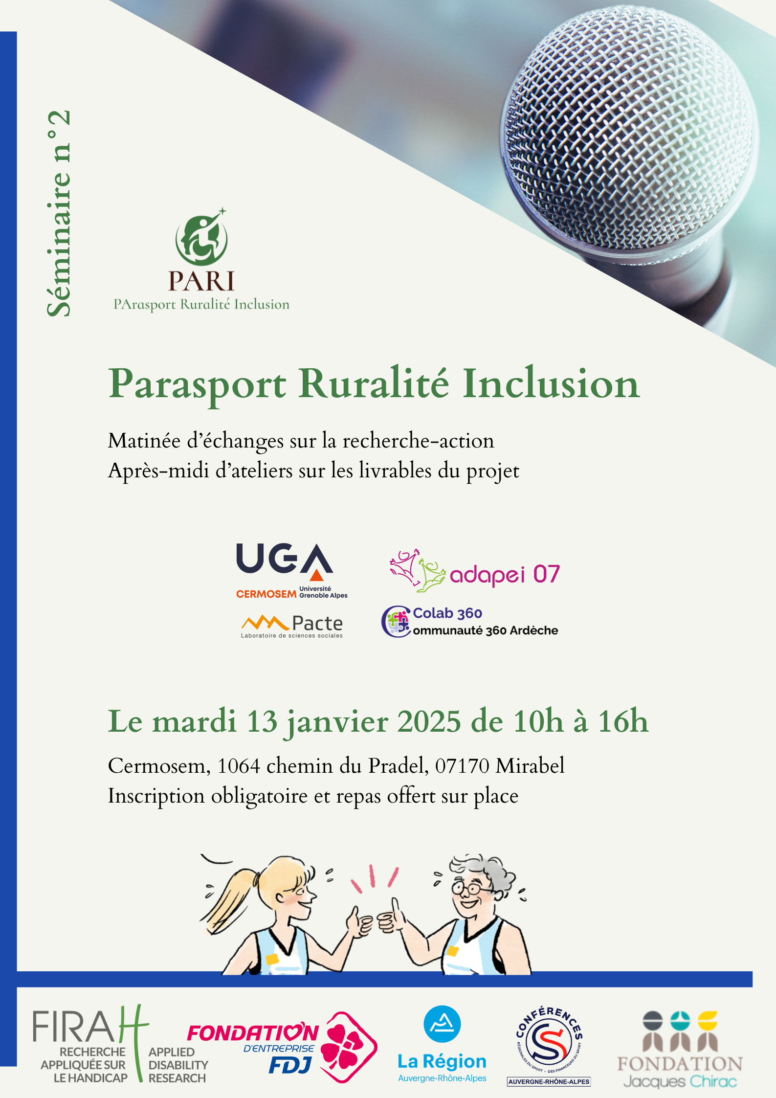 Le 13 janvier 2026 a eu lieu le second séminaire de la recherche-action Parasport Ruralité Inclusion. Une journée dédiée aux échanges autour des résultats, au partage d’expériences et à la co-construction des livrables pour favoriser l’inclusion par le parasport en milieu rural.